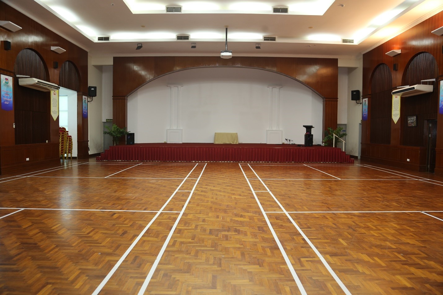 This is a theatrette type hall, equipped with chairs, stage and AVA