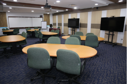 This training room is located at level 3. The Room is equipped with two LED TV, tables, chairs, flipchart and soft board. Also each Round Table consists of Power and Ethernet Sockets.