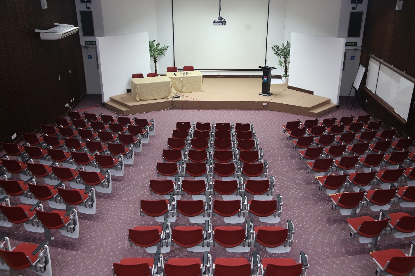 This a theatrette type located at ground Floor at the right wing from the main entrance. The hall is equipped with chairs, white board and podium. The instructor area is elevated for a small ceremony stage.